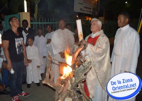 Santo Domingo Este-El parroco de la iglesia San Vicente de Paul Gregorio Alegria inicio este sabado santo la vigila pascual junto a cientos de ferigreses que asistieron en espera la la resureccion de jesucristo a la media noche de hoy